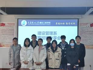 本次会议由林婧老师主持,邀请比赛经验丰富的8名研究生参与分享活动。学长学姐从组建团队、寻找支持、学习方法、灵感来源、试错经验等方面,对比赛中容易出现的困难疑点进行了分析,并推荐了对提高综合能力有帮助的重要比赛以及获取比赛信息的渠道,大力鼓励同学们参加互联网+大赛、数学建模比赛、BIM毕业设计比赛和房地产策划等比赛,获得不同参赛体验和收获。最后,应同学们的需求提供了组队参赛在线信息交流文档。